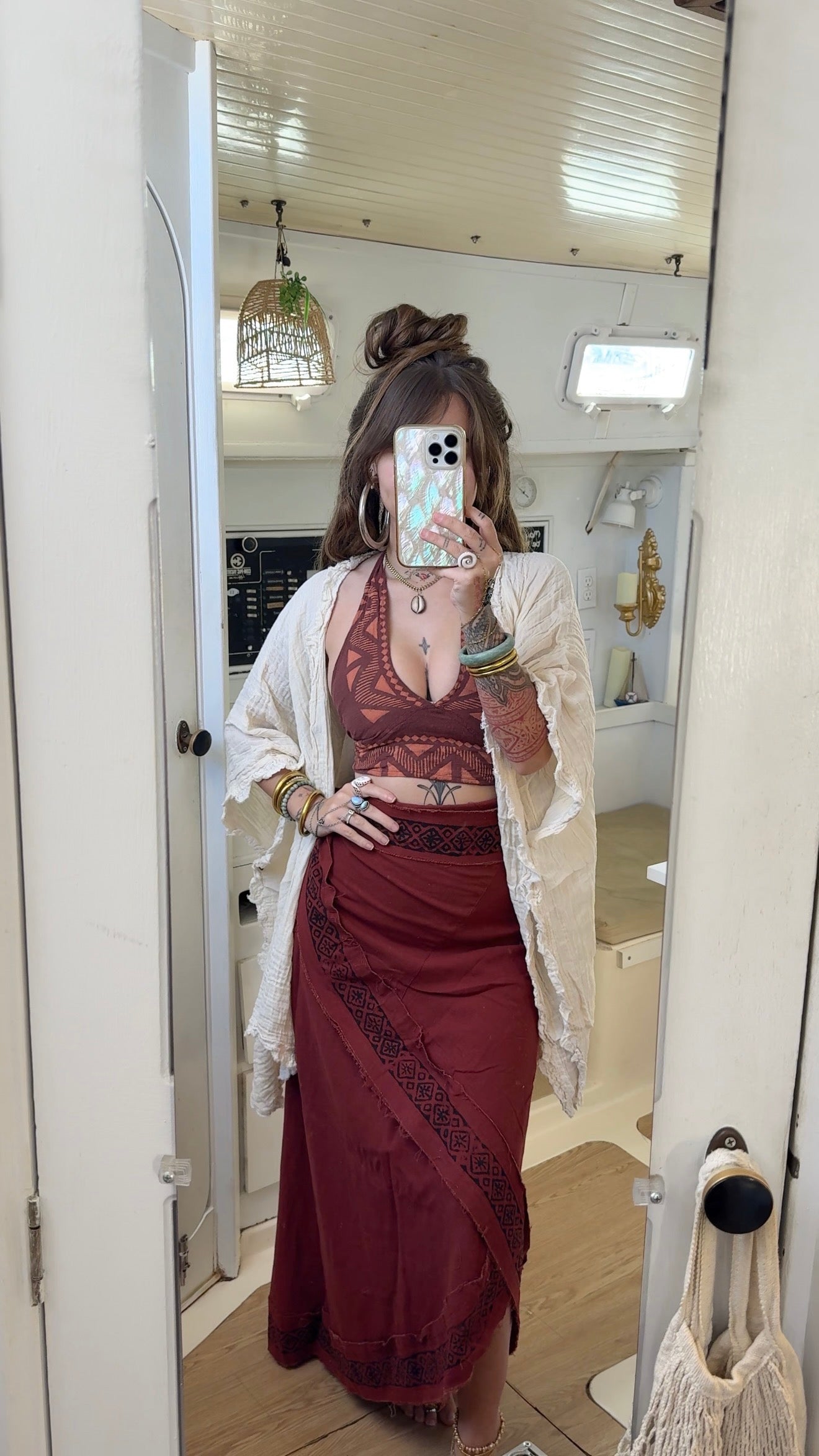 Creation Process: These pieces are meticulously handmade using premium, organic, raw materials and chemical free dyes. The team of artisans who took part of the creation process are not only paid a living wage, but create everything from scratch using sustainable zero waste practices. Crafted by skilled local artisans, these garments are created in harmony with nature- designed to honor the Earth while inspiring balance and mindfulness in your everyday life.