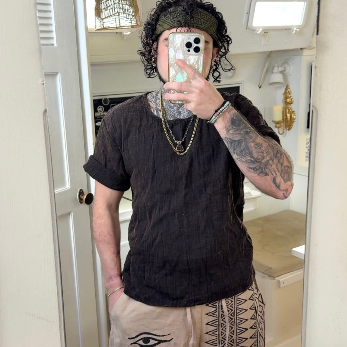 Creation Process: These pieces are meticulously handmade using premium, organic, raw materials and chemical free dyes. The team of artisans who took part of the creation process are not only paid a living wage, but create everything from scratch using sustainable zero waste practices. Crafted by skilled local artisans, these garments are created in harmony with nature- designed to honor the Earth while inspiring balance and mindfulness in your everyday life.