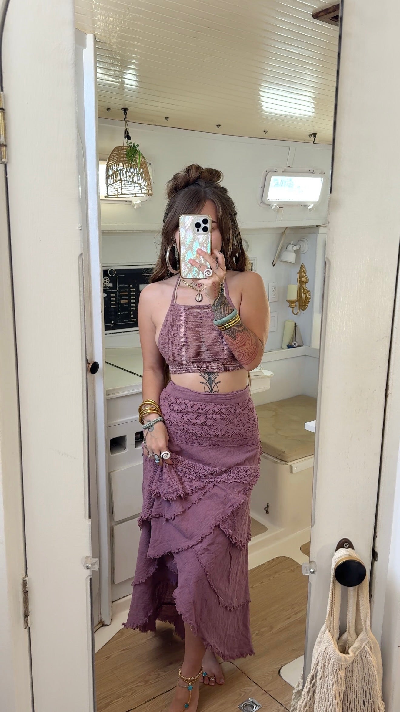 Creation Process: These pieces are meticulously handmade using premium, organic, raw materials and chemical free dyes. The team of artisans who took part of the creation process are not only paid a living wage, but create everything from scratch using sustainable zero waste practices. Crafted by skilled local artisans, these garments are created in harmony with nature- designed to honor the Earth while inspiring balance and mindfulness in your everyday life.